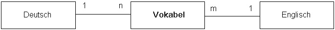 "Vokabel" ist hier eine Assoziationsklasse. Die Klasse "Deutsch" enthält Referenzen auf n Objekte