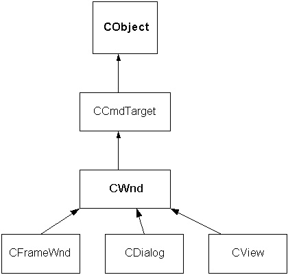CCmdTarget von CObject, CWnd von CCmdTarget, CFrameWnd, CDialog und CView von CWnd.
